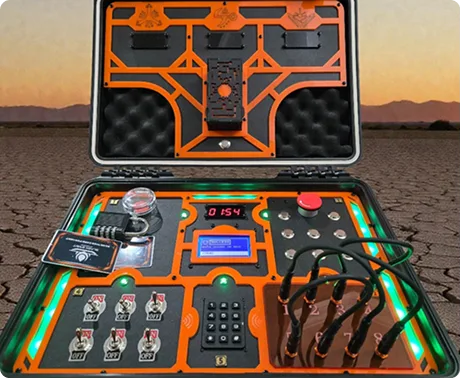 Solve puzzles, find clues, and complete challenges—all inside our air-conditioned mobile unit.