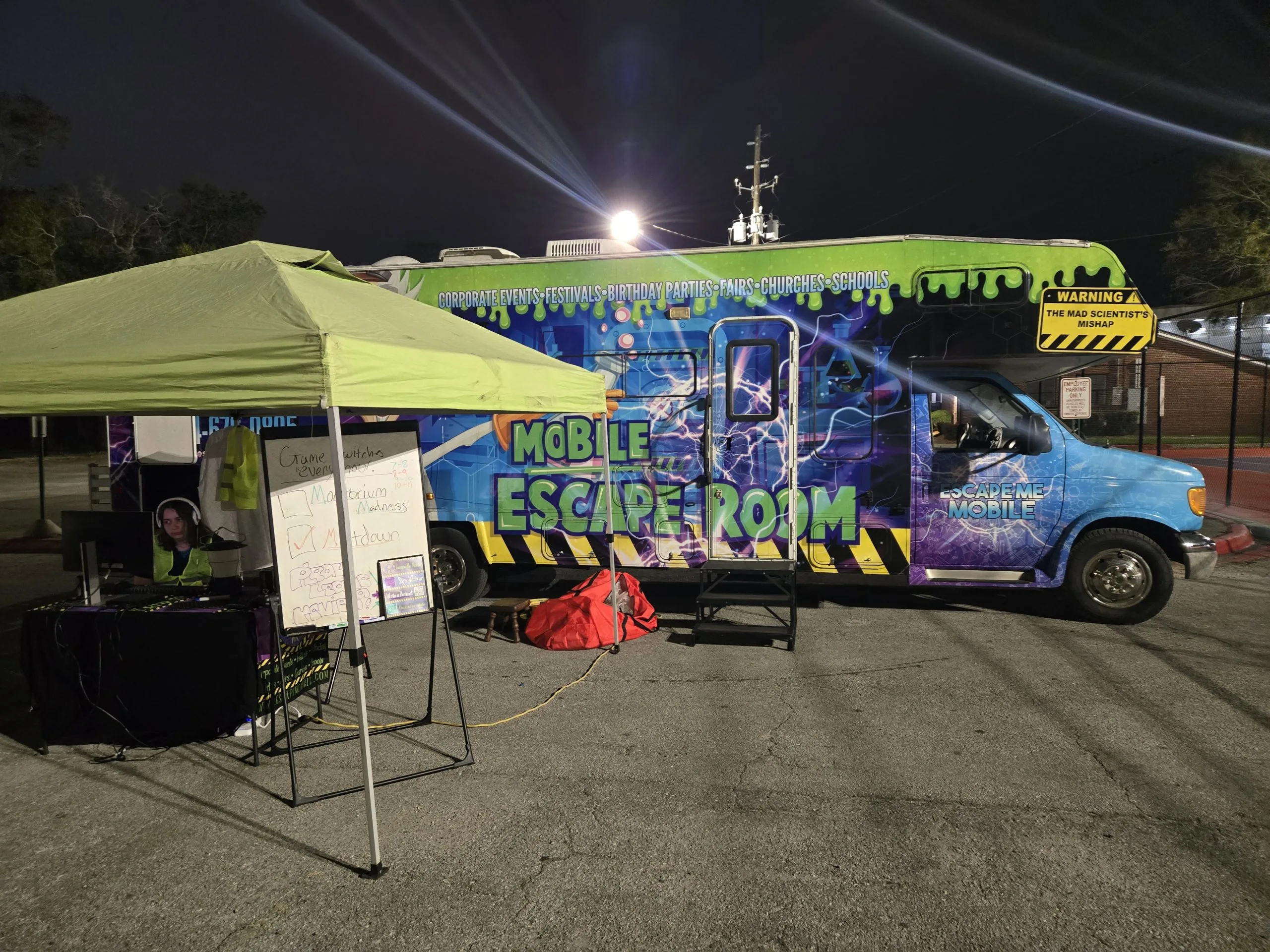 Escape Me Mobile is North East Florida’s only fully mobile escape room experience. We bring the thrill, challenge, and excitement of an immersive escape adventure directly to your location—whether it’s your home, office, school, festival, or special event. Our mission is simple: to deliver unforgettable fun while introducing people to the world of mobile escape rooms, a concept many still don’t know exists.